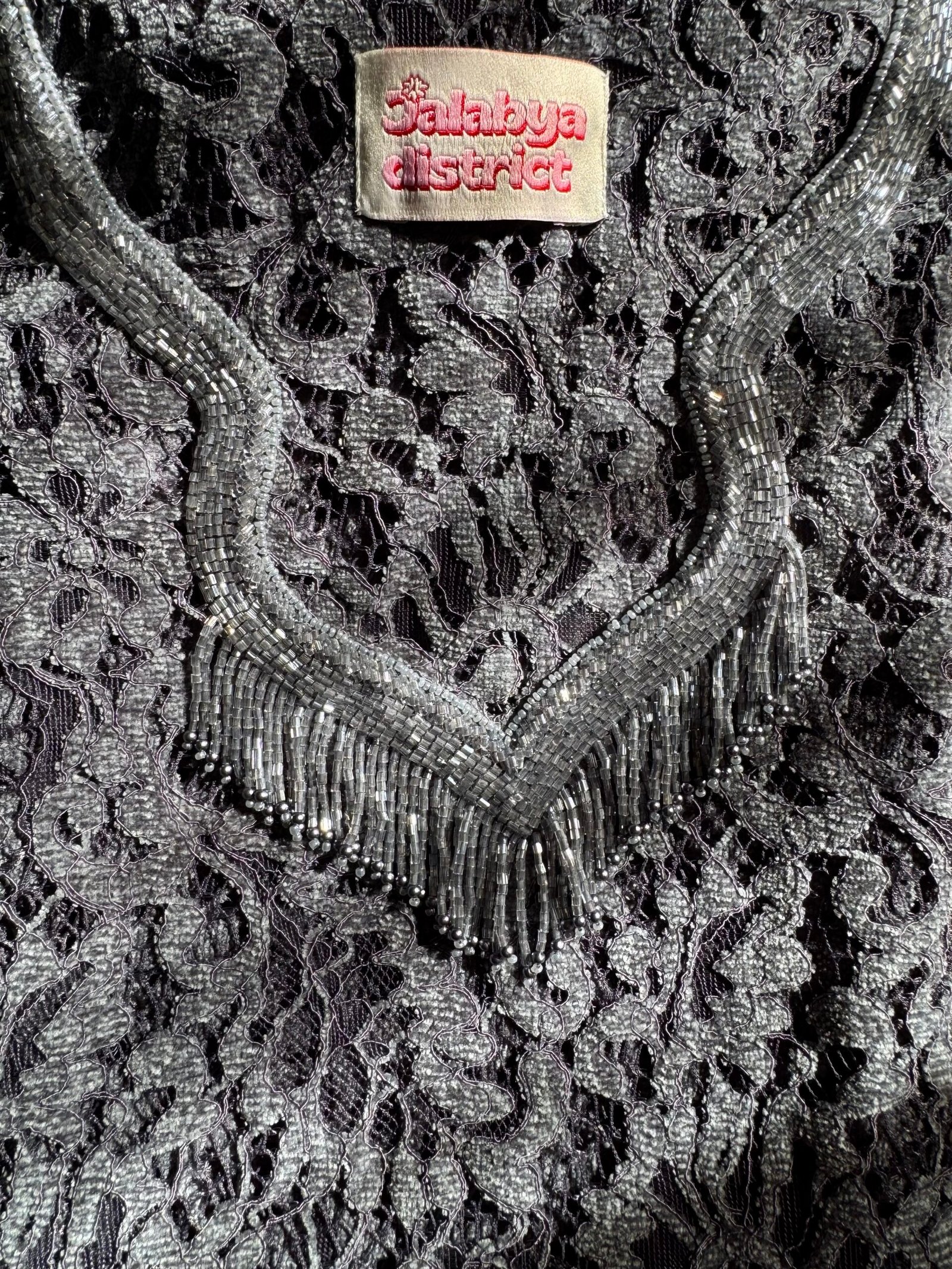 velvet lace jalabya with JD signature neck design (silk lining included).