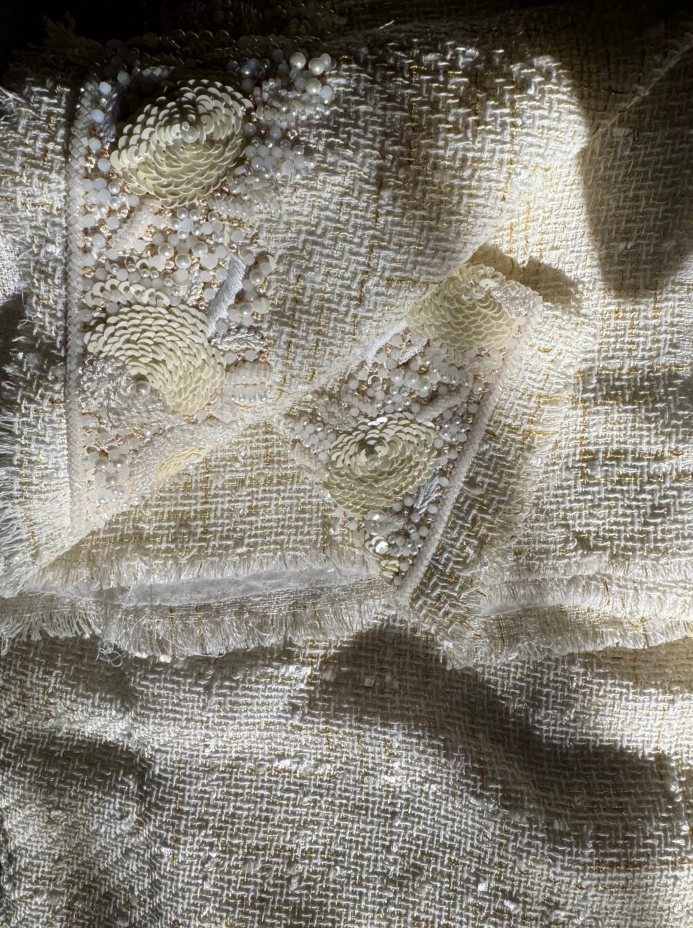 linton tweed with handmade embroidery